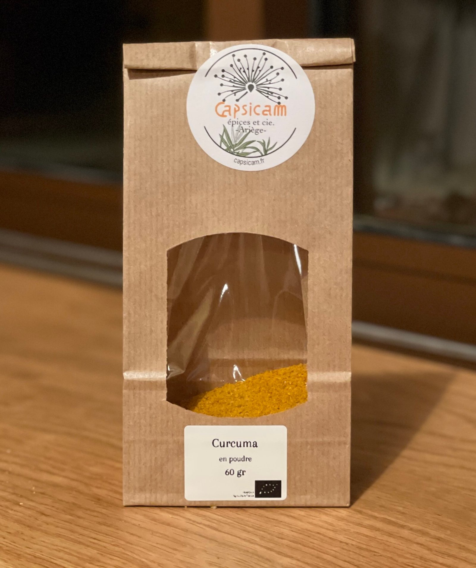 Issu de Curcuma longa, variété de la famille des zingibéracées, ce curcuma est certifié en Agriculture Biologique, semé, cueilli et transformé à la ferme, en Ariège. Un véritable produit artisanal et local, moulu par petites sessions afin de préserver une fraîcheur et une intensité aromatique inégalées.